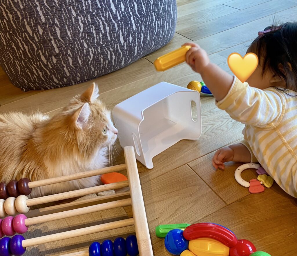 たまに娘のおもちゃにそっと手を出して、「あ、それわたしの…?」みたいな顔をしていることも(笑)