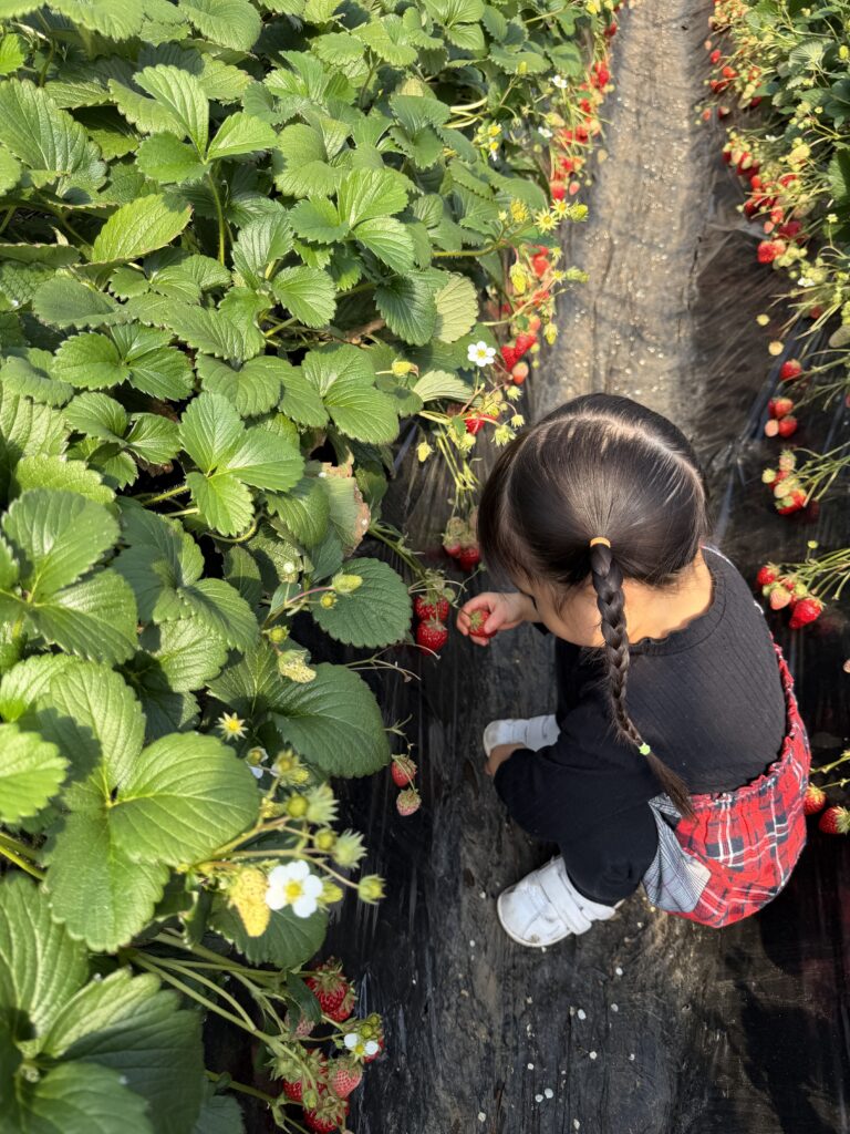 - いちごは低い位置にもあって子どもでも取りやすい